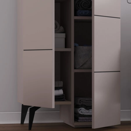 Ντουλάπι κουζίνας/μπάνιου – Παπουτσοθήκη Stair μελαμίνης χρώμα ανοιχτή μόκα 62,2×37,4×156εκ.