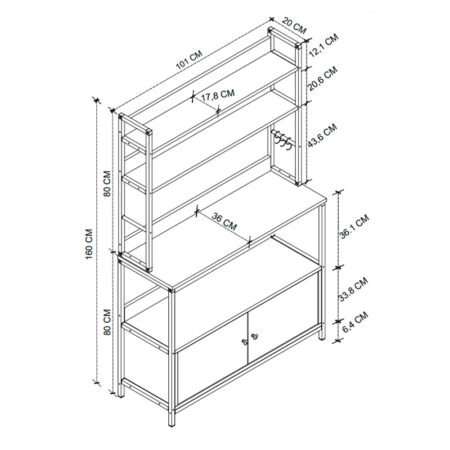 Έπιπλο κουζίνας Severo μεταλλικό – μελαμίνης χρώμα μαύρο – καπνιστή καρυδιά 101x36x160εκ.