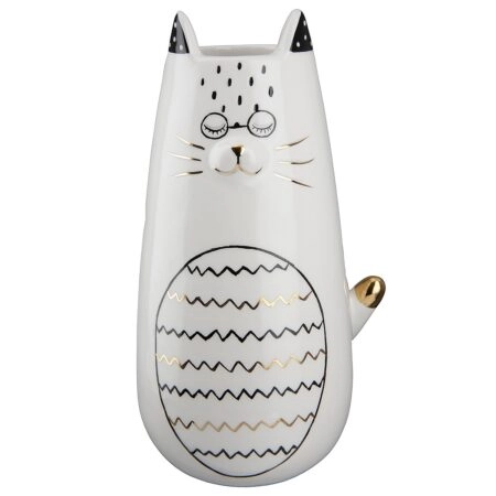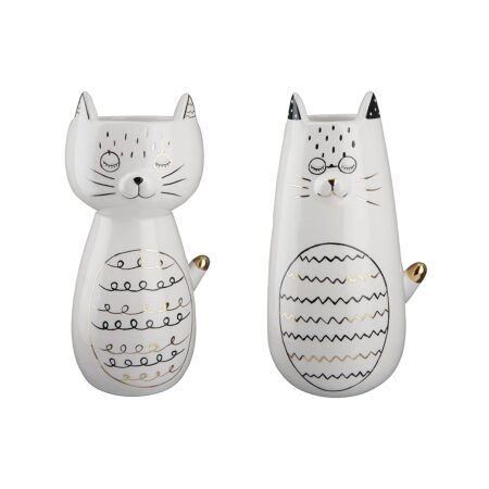Βάζο Γάτα Που Κοιμάται Λευκό Κεραμικό 9.5×8.5×18.5cm Σε 2 Σχέδια