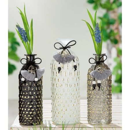 Βάζο Μπουκάλι Γυαλί 20cm Σε 3 Χρώματα
