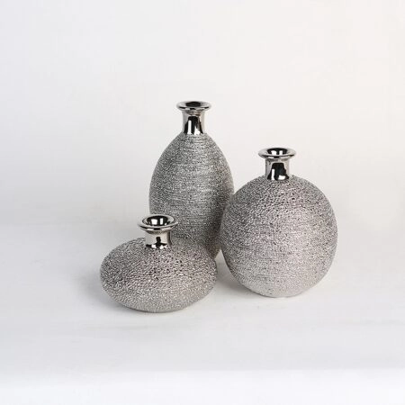 Βάζο Ασημί Κεραμικό Φ9x15cm Σε 3 Σχέδια