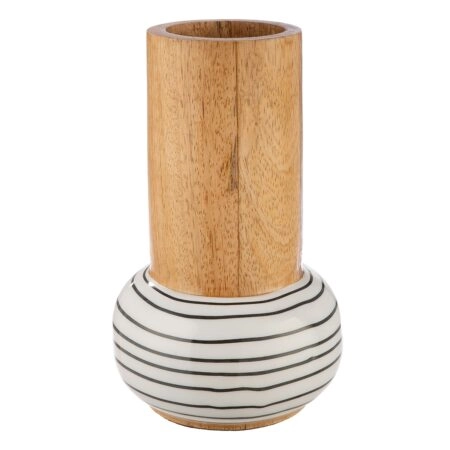 Βάζο “Black & White” Dotted Striped Ξύλο Ecru Λευκό PU Pcs. Assorted H. 19 cmd. 12 cm