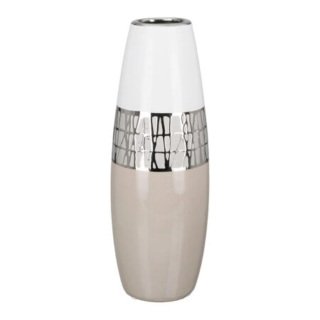 Βάζο Λευκό/Ασημί/Μπεζ Κεραμικό 12.5×12.5x29cm