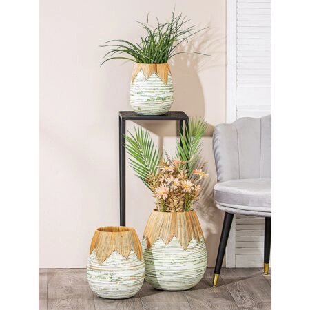 Βάζο Εκρού Μπαμπού/Rattan Φ20x23cm
