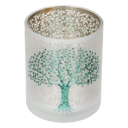 Φανάρι Κυλινδρικό Δέντρο Μοτίφ Γυάλινα Πράσινο Λευκό D10X13Cm D10X13Cm
