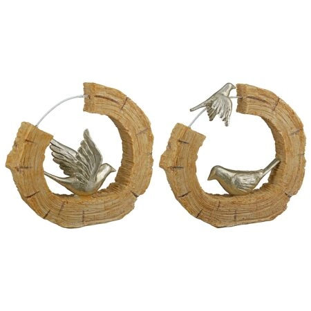 Διακοσμητικό Πουλιά Σε Κορμό Εκρού/Ασημί Polyresin 19x5x18cm Σε 2 Σχέδια