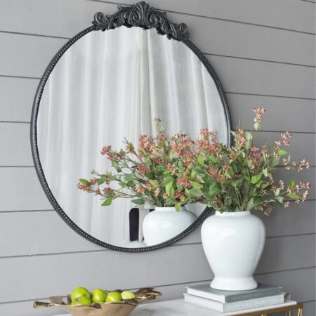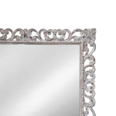 Artekko Mirroki Ξύλινος Λευκός Πατίνα Σκαλιστός Καθρέπτης Τοίχου (120×90)cm