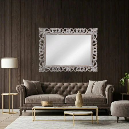 Artekko Mirroki Ξύλινος Λευκός Πατίνα Σκαλιστός Καθρέπτης Τοίχου (120×90)cm