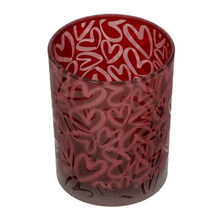 Φανάρι Κυλινδρικό Μοτίβο Καρδιάς D10X13Cm D10X13Cm Υλικά: Γυάλινα σκεύη Χρώμα: Κόκκινο …