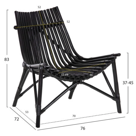 ΚΑΡΕΚΛΑ ΕΞΩΤ.ΧΩΡΟΥ CELLION HM9812.02 ΡΑΒΔΟΙ RATTAN ΣΕ ΜΑΥΡΟ ΧΡΩΜΑ 76x72x83Υεκ.