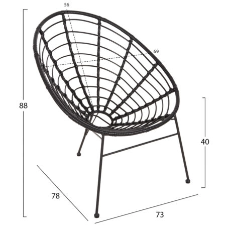 ΠΟΛΥΘΡΟΝΑ ΤΥΠΟΥ ΦΩΛΙΑ ΜΕΤΑΛΛΙΚΗ ALLEGRA HM5458.12 ΜΕ WICKER-ΜΑΥΡΟ 73x78x88Υεκ.