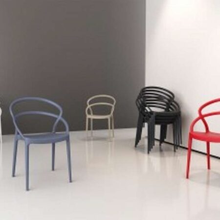 Καρέκλα PIA του οίκου Siesta μαύρο χρώμα, σε μοντέρνα γραμμή, με ιδιαίτερο design. Κατασκευασμένη από πολυπροπυλένιο με 20% fiber glass για απόλυτη αντοχή στον χρόνο.…