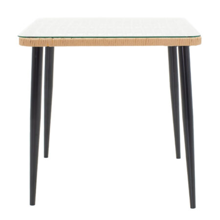 Τραπέζι Naoki γυαλί-μέταλλο μαύρο-pe rattan σε φυσική απόχρωση 80x80x78εκ
