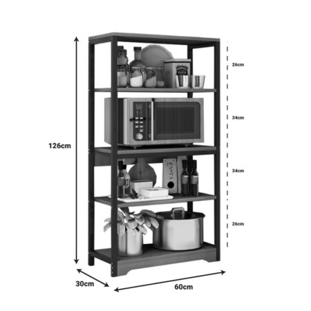 Ραφιέρα επιδαπέδια Obra μέταλλο καρυδί-μαύρο 60x30x126εκ