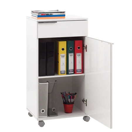 Ντουλάπι Chad τροχήλατο με συρτάρι λευκό gloss 50x40x100εκ