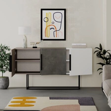 Μπουφές Estella γκρι antique-μόκα-λευκό 150x42x79.5εκ