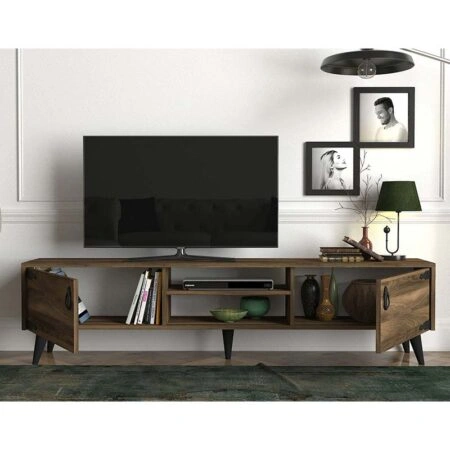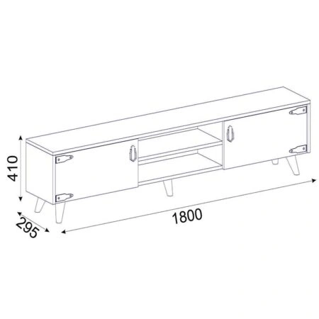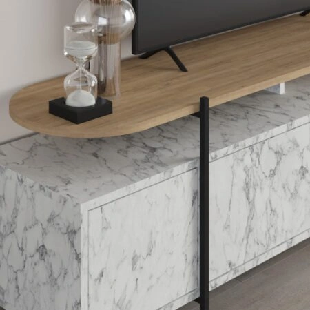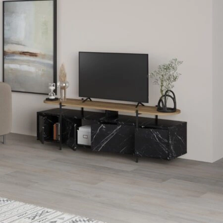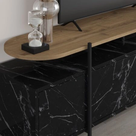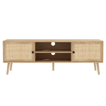 Έπιπλο τηλεόρασης-Μπουφές μεσαίου μεγέθους Scandi MDF φυσικό με μεταλλικά μαύρα πόδια 150x45x57.5εκ