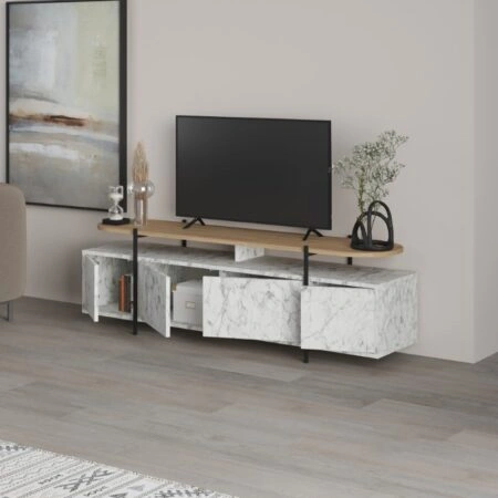 Έπιπλο τηλεόρασης επιτοίχιο Roscoe λευκό-oak 100×31.5×29.5εκ