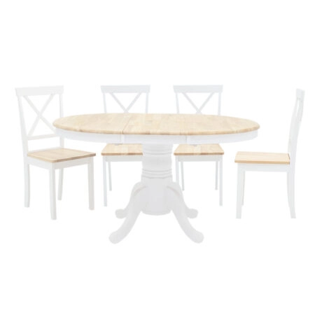 Tραπεζαρία Lars-York σετ 5τμχ επεκτεινόμενη ξύλο λευκό-φυσικό Φ100(+38)x100x75εκ