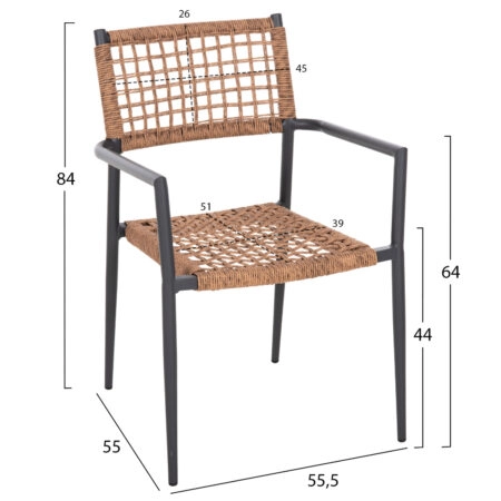 Πολυθρόνα αλουμινίου Clutch στοιβαζόμενη ανθρακί σκελετός-φυσικό rattan 55x56x80εκ