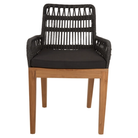 Πολυθρόνα Winslow ξύλο rubberwood μαύρο-pvc rattan φυσικό-ύφασμα γκρι