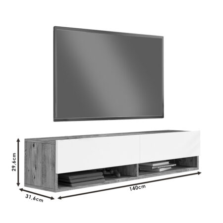 Έπιπλο τηλεόρασης επιτοίχιο Serit λευκό-sonoma 140×31.6×29.6εκ