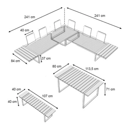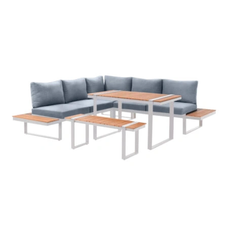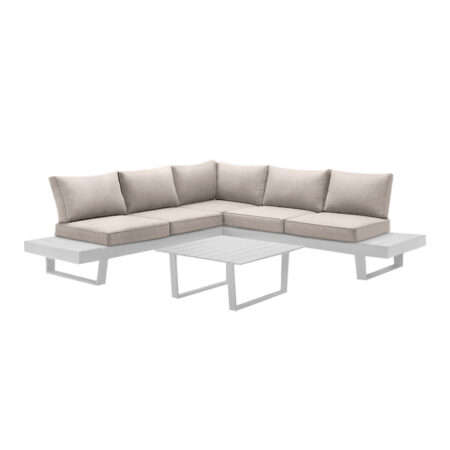 Σαλόνι κήπου γωνιακό Lyra σετ 3 τμχ μέταλλο – ξύλο χρώμα λευκό