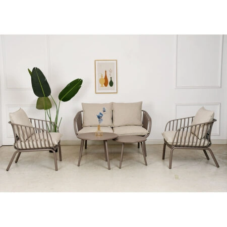 Σαλόνι κήπου Tropicana 4τεμ pe rattan σε καφέ απόχρωση – ύφασμα μπεζ