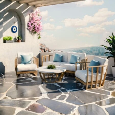 Σαλόνι κήπου γωνιακό Artemis Megapap σετ 4 τμχ μέταλλο – ξύλο χρώμα λευκό – καρυδί Για όσους ψάχνουν ένα εντυπωσιακό και παράλληλα πρακτικό σαλόνι κήπου…