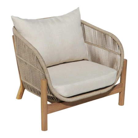 Σαλόνι εξωτερικού χώρου Macrena μασίφ ξύλο ακακίας με σχοινί και μπεζ μαξιλάρια