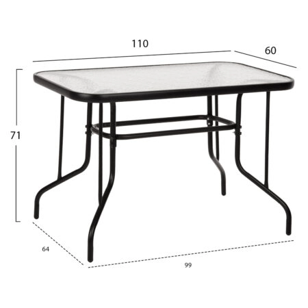 Επιφάνεια: επίπεδο rattan PE 8x1.3mm, γυαλί tempered 5mm