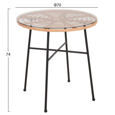 ΤΡΑΠΕΖΙ ΣΤΡΟΓΓΥΛΟ ALLEGRA HM5535.11 ΜΕΤΑΛΛΙΚΟ ΜΑΥΡΟ-P.E. RATTAN ΣΕ ΦΥΣΙΚΟ Φ70×74Υεκ