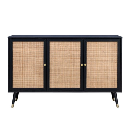 VIENNA ΜΠΟΥΦΕΣ ΜΑΥΡΟ ΜΕ RATTAN 120x39xH75,5cm