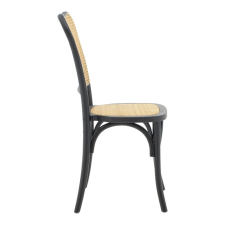 Καρέκλα στοιβαζόμενη Zoel μαύρο ξύλο οξιάς-φυσικό rattan 45x52x82εκ
