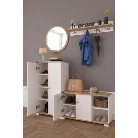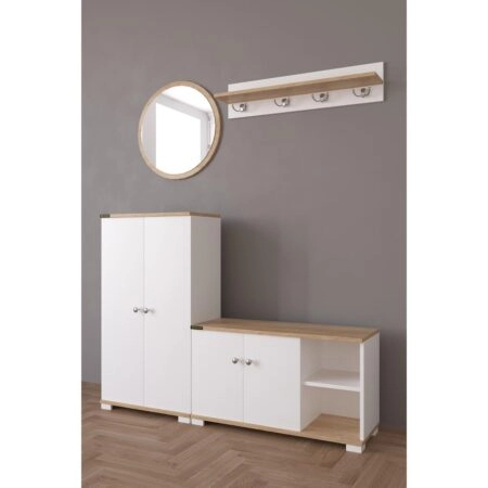 Έπιπλο Εισόδου Με Καθρέπτη JEMILA Δρυς/Λευκό Μοριοσανίδα/Γυαλί 150x33x183cm