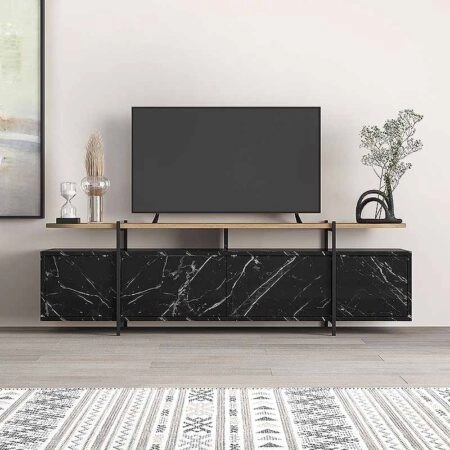Έπιπλο τηλεόρασης Standi σε μαύρο-μαύρο μαρμάρου απόχρωση 120x25x36.8εκ