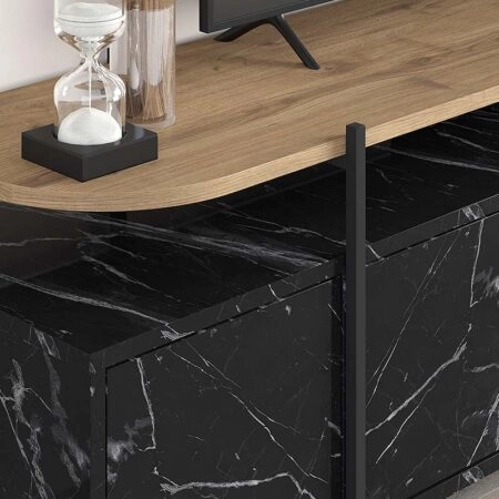 Έπιπλο τηλεόρασης Hanley από μελαμίνη χρώμα μαύρο εφέ μαρμάρου 160×35,6×48εκ.