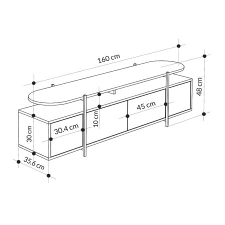 Έπιπλο τηλεόρασης Hanley Megapap από μελαμίνη χρώμα μαύρο εφέ μαρμάρου 160×35,6×48εκ. Τεχνικά χαρακτηριστικά: Χρώμα: μαύρο εφέ μαρμάρου και επιφάνεια σε χρώμα ανοιχτό καφέ. Διαστάσεις: Μήκος 160 x…