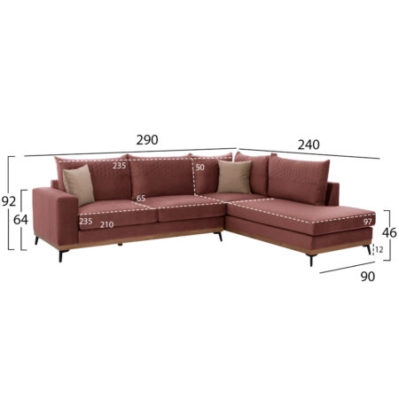 ΚΑΝΑΠΕΣ ΓΩΝΙΑ ΚΡΕΒΑΤΙ LIVIA ΒΕΛΟΥΔΟ ΣΑΠΙΟ ΜΗΛΟ ΜΕ ΥΠΟΠΟΔΙΟ 211X158X83Y εκ.HM3151.02