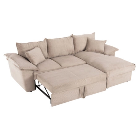 ΓΩΝΙΑΚΟΣ ΚΑΝΑΠΕΣ-ΚΡΕΒΑΤΙ ΜΕ ΑΠΟΘ.ΧΩΡΟ ALDO HM3276.01R ΜΠΕΖ ΥΦΑΣΜΑ 256×91-159×87Υεκ.