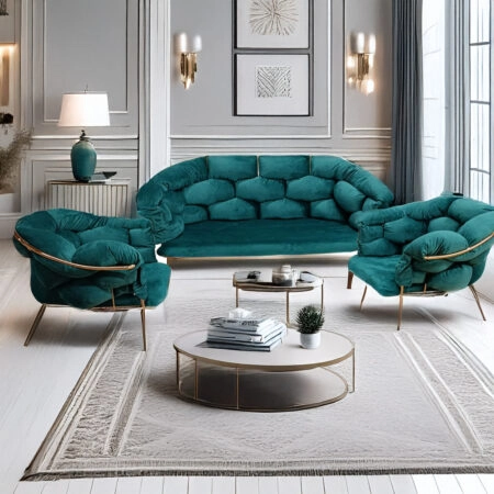 Artekko Balon Βελούδινο Μαύρο Σετ Σαλονιού Διθέσιος Καναπές (135x60x80)cm 2 Πολυθρόνες (75x60x80)cm