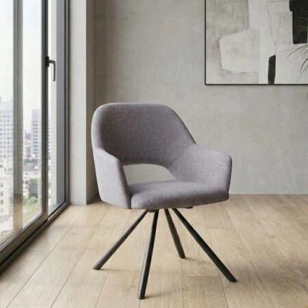 Πολυθρόνα τραπεζαρίας Monica Megapap γκρι ύφασμα – μεταλλικό μαύρο πόδι 54x57x84εκ.