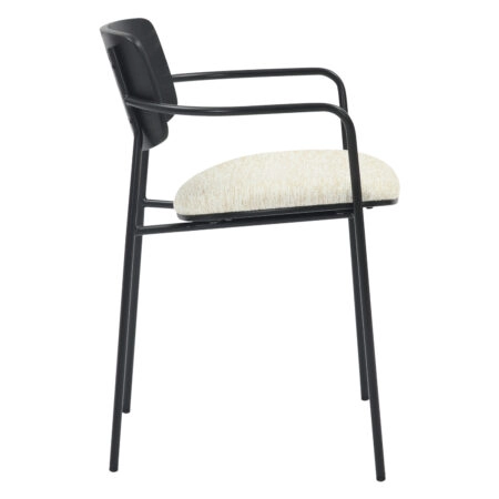 Denis καρέκλα με μεταλλικό σκελετό βαφής και κάθισμα από ύφασμα σε χρώμα cream.Ο σχεδιασμός της συνδυάζει το κλασικό με το μοντέρνο,δημιουργώντας ένα κομψό σύνολο για…