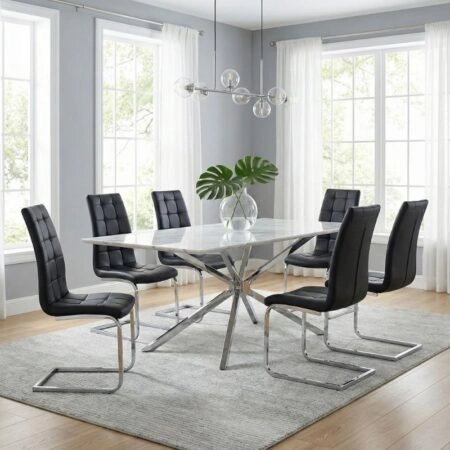 Καρέκλα τραπεζαρίας Vela Megapap μαύρο PU – μεταλλική βάση χρωμίου 41x61x107εκ.