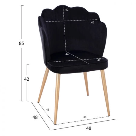 Καρέκλα Giselle βελούδο μαύρο-πόδι μαύρο χρυσό