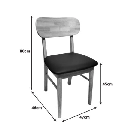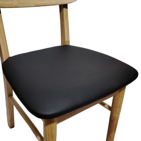 Καρέκλα Bedona rubberwood σε φυσική απόχρωση με μαύρο pu μαξιλάρι 47x46x80εκ