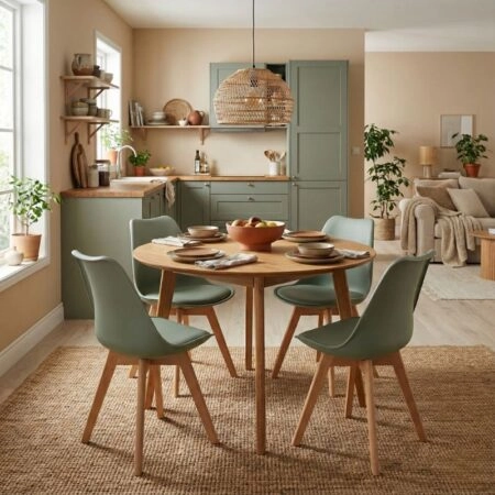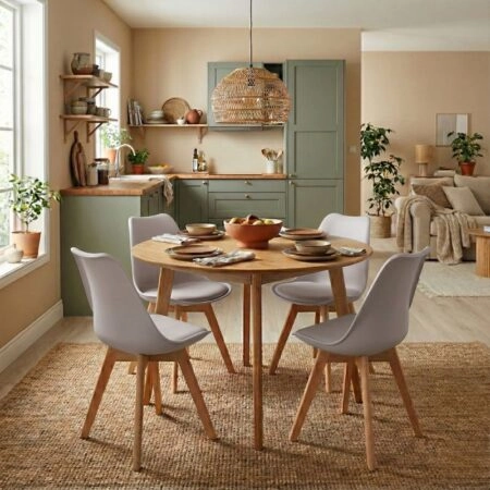 Καρέκλα τραπεζαρίας Viva Megapap PP – PU φυστικί – ξύλινο φυσικό πόδι 48,5x54x80εκ.