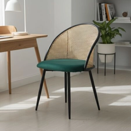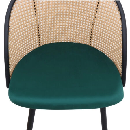 Καρέκλα τραπεζαρίας Jacob Megapap pe rattan – κυπαρισσί βελούδο – μεταλλικό μαύρο πόδι 52x50x77εκ.