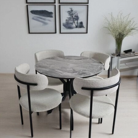 Καρέκλα τραπεζαρίας Chiara Megapap γκρι ύφασμα – μεταλλικό μαύρο πόδι 48x58x81εκ.