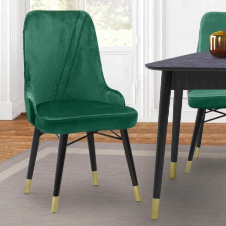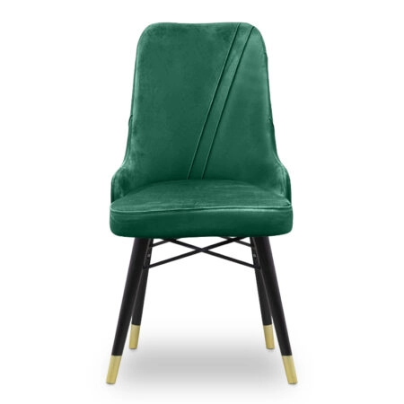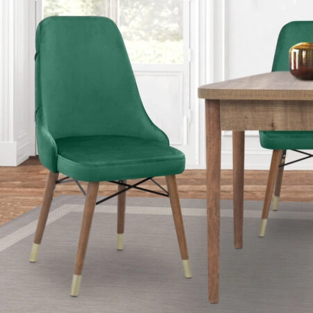 Καρέκλα τραπεζαρίας Venus από βελούδο χρώμα κυπαρισσί – καρυδί/χρυσό πόδι 53x48x95εκ.